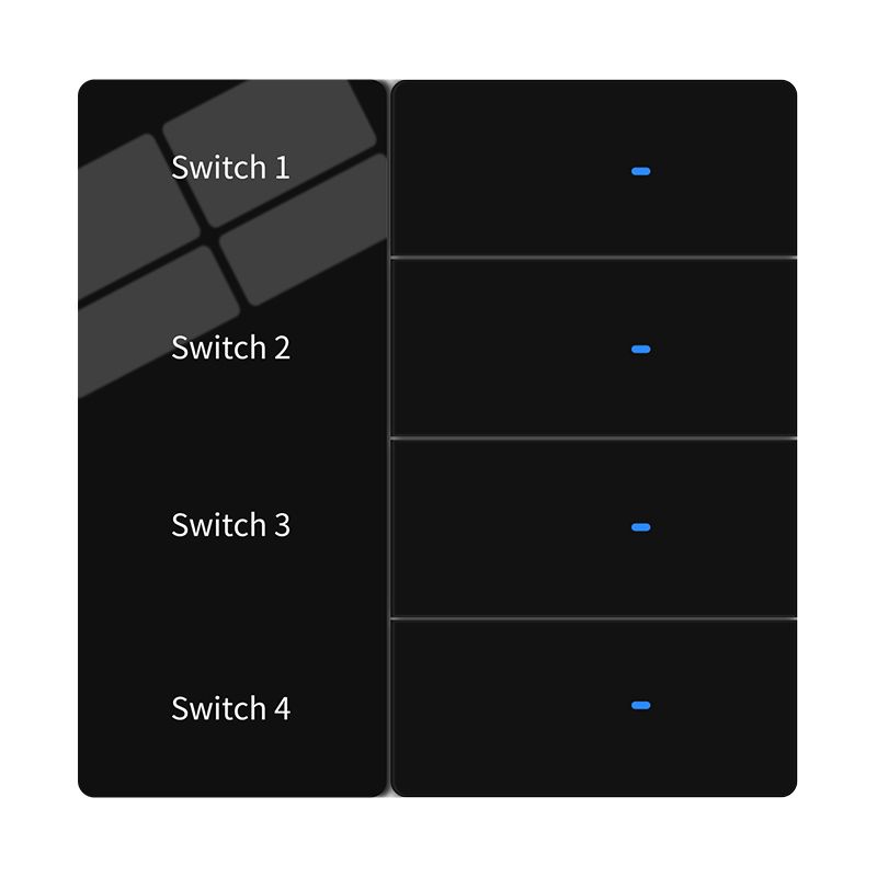 This customizable digital smart switch comes in 1–4 gang options and features responsive touch controls for easy operation. Available in black, white, and grey, it complements any modern interior. It can control multiple lighting zones from a single panel and includes built-in motion detection, allowing the switch light to turn on automatically when movement is detected. A soft backlight ensures the switch is easy to locate in the dark, and each switch can be labeled or customized to match the specific appliance or lighting zone you want to control.